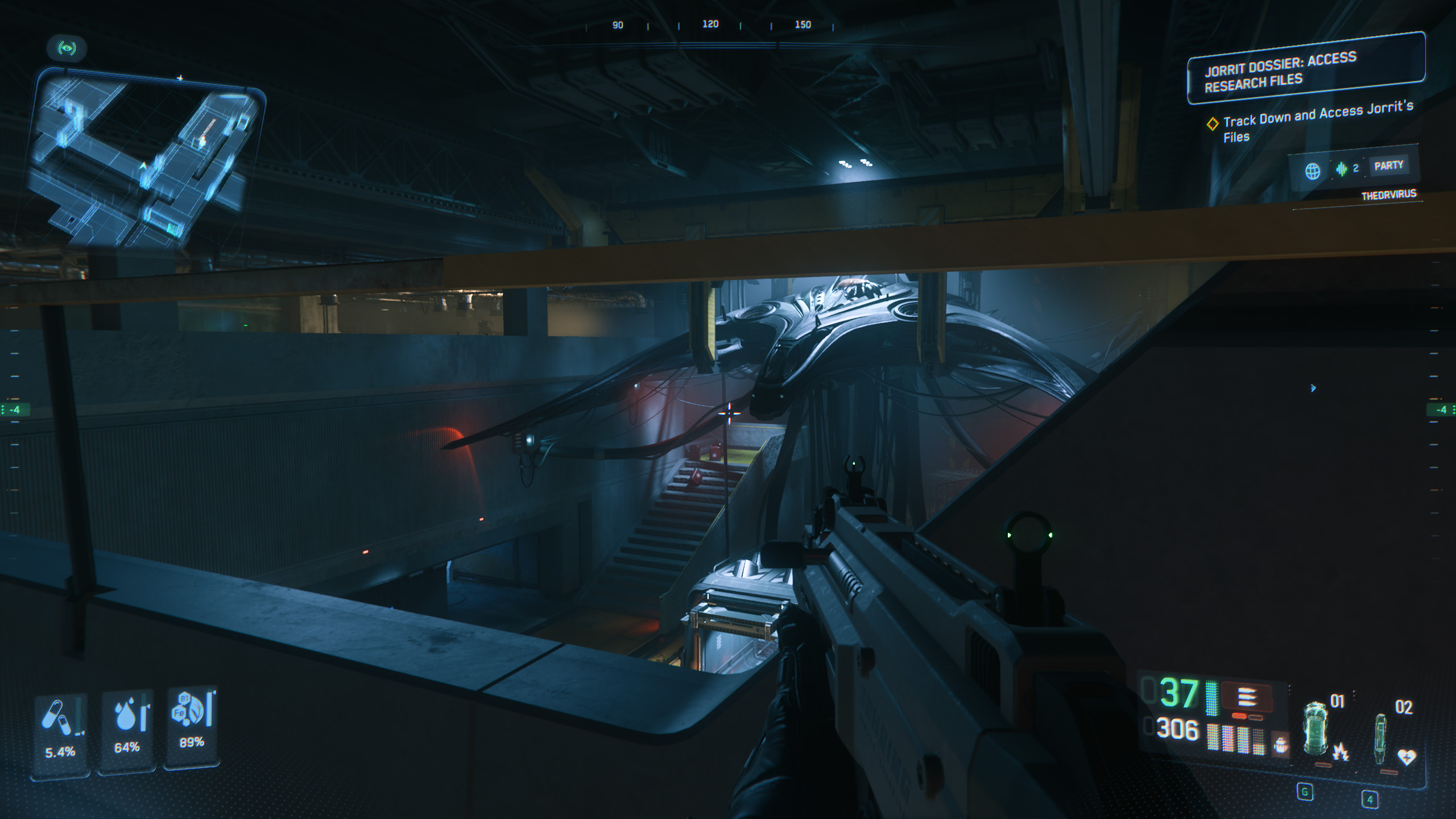 The second is that this isn’t just some throw-away content used as a contrived reason for sending players into a glorified basement lab. I will admit that it was hard to parse the minute to minute situation; CIG has coded in some voice acting to provide exposition, and there are voice recorders throughout the facility that add nuance and layers to this chapter of the story, but when I’m in the middle of watching my back, counting my ammo, and healing my injuries I find it hard to focus on narrative threads. But the fact that it is an ongoing, multi-step investigation, with pieces hidden throughout the facility and requiring tasks to be done both inside and outside of the facility makes this in-depth content feel worthwhile beyond just a “this is a step in a quest chain I must do”.