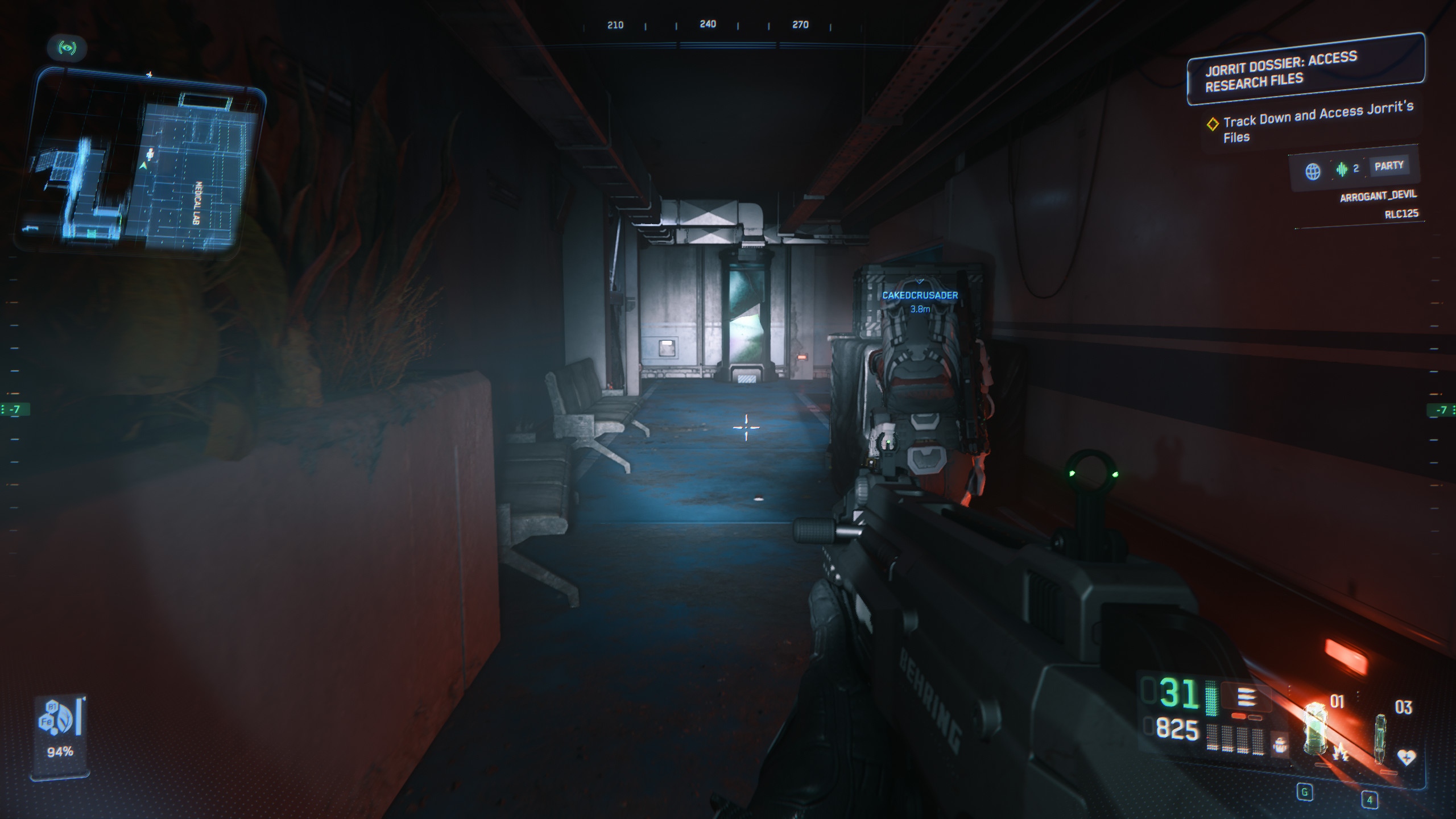 Next we had to go back, but this time we needed to get to the research wing. This turned out to be a much longer session. I accidentally fell down a stairwell. @CakedCrusader got stuck in a wall because Star Citizen; I had to kill him, and before I could get my medigun in hand he respawned six stories up and had to find a way to get back down to where I was. The good news is that we managed to find the exit to the lobby this time, so we regrouped there before heading back down a second time to achieve the goal and, knowing roughly where we were going this time, return home safely.