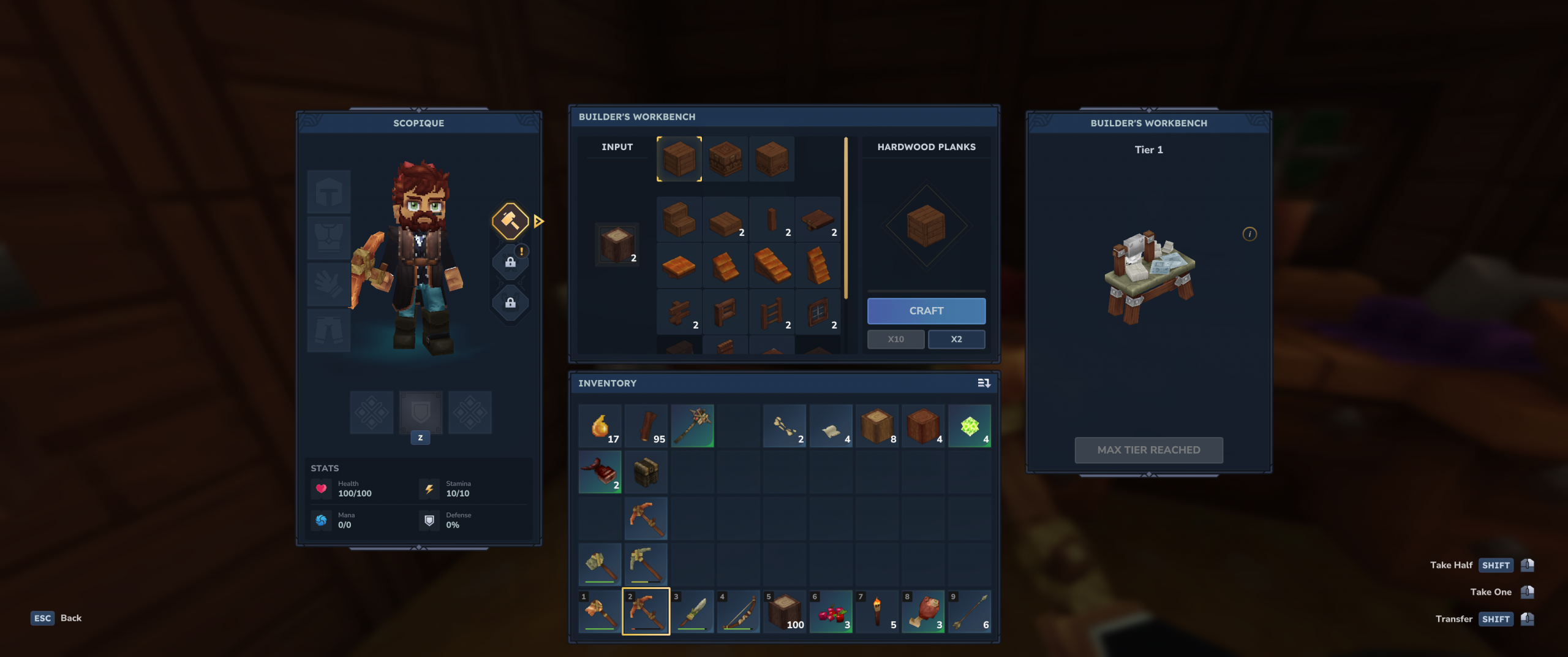 There’s block breaking, tool crafting, and cave delving within the first 15 minutes, as all good Minecraft-likes are wont to do. The early game takes only a few minor liberties with the tested Minecraft formula, such as requiring a “builder workbench” to create walls, doors, windows, stairs, and other house-construction parts rather than opt for a single, monolithic workbench that uses configuration of materials that determine the item build, but Hytale’s approach seems more about bridging the gap between other survivalbox construction titles than it is breaking new ground in the Minecraft-like realm.