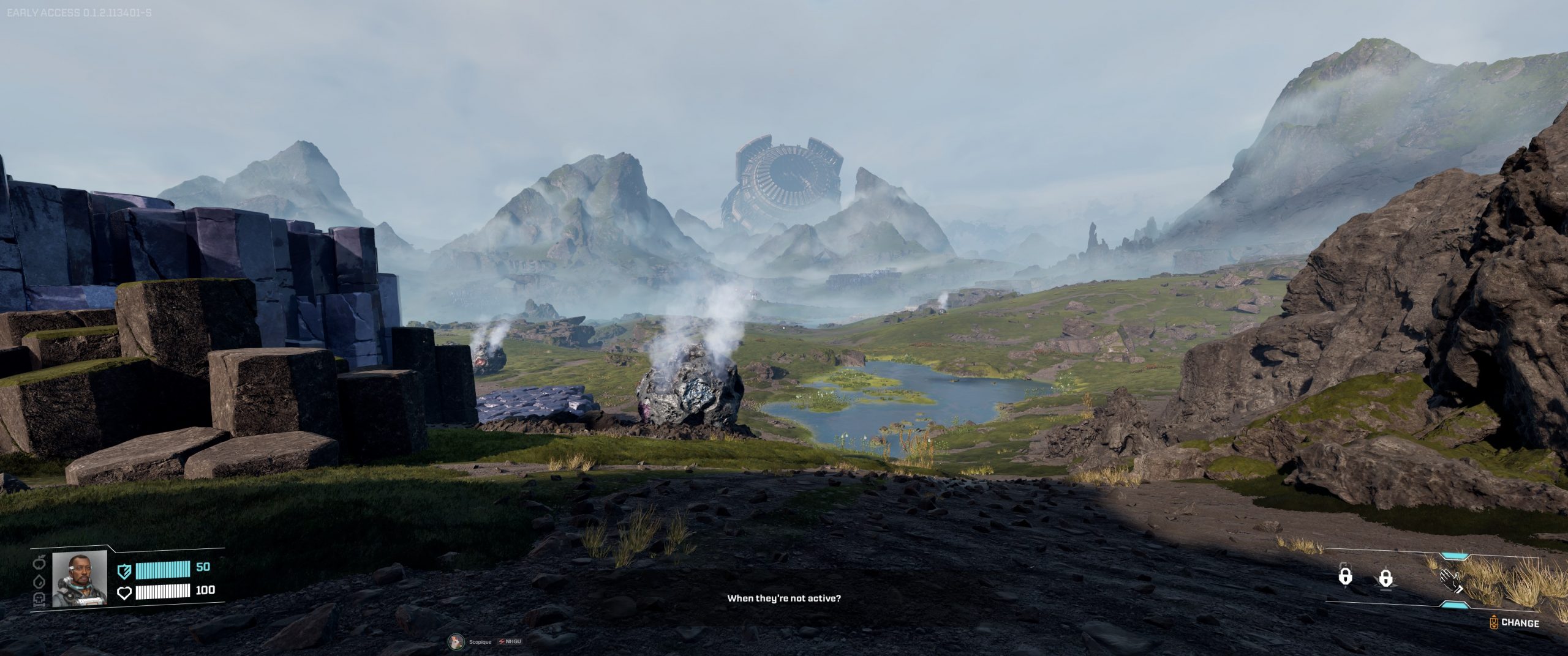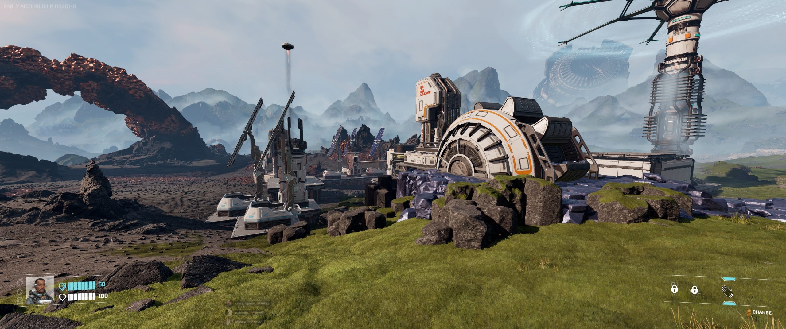 There are enemies that can be encountered early on, small four-legged insect-slash-lizard things that can be killed using the hand mining cannon. There are also a few points of interest visible on the horizon, such as area scanners which can write information to a map tablet (which needs to be unlocked at the corporate terminal). Far in the distance, one can see the remains of the previous colonization attempts, so not only do I expect there to be more difficult and larger creatures to avoid and/or slaughter, but I suspect there’s history to uncover.