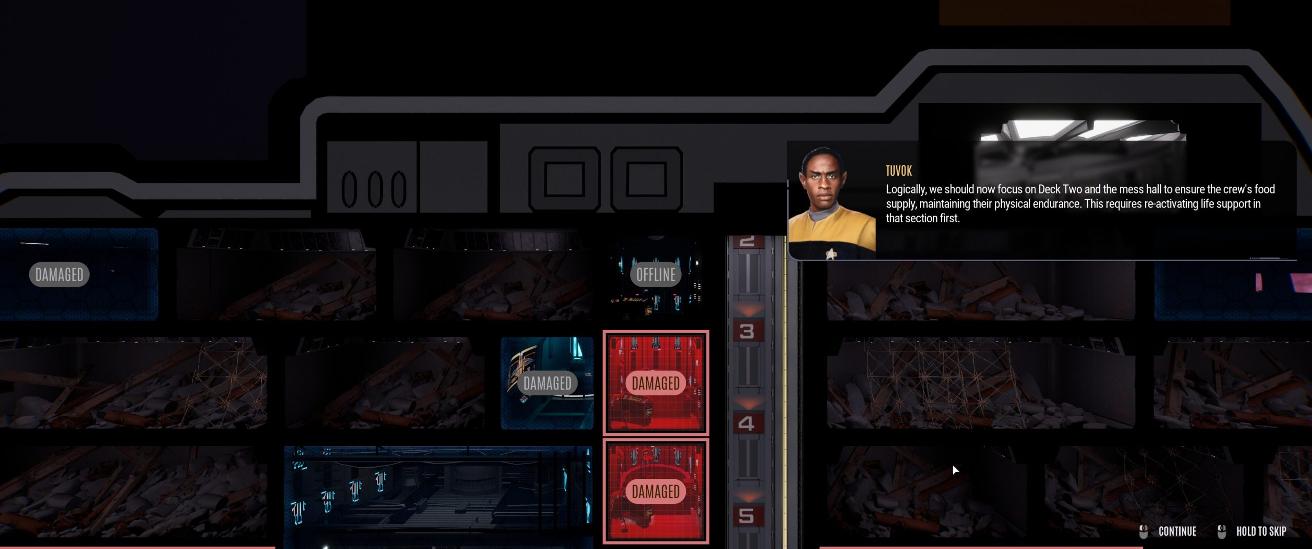 The second most important part is getting the ship back in order. After arriving in the Delta Quadrant, Voyager is worse for wear; most of the decks are offline and ruined, so the short-team goal is to restore operation to the ship one deck and one deck section at a time.