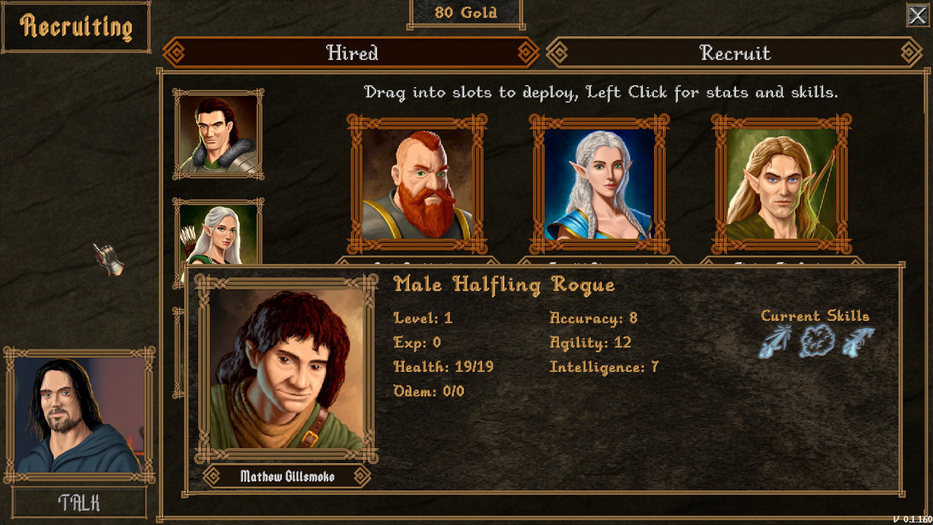My party member choices were fairly limited, although a rotating roster of transient heroes will be made available at launch, I’m told. I got to pick three from the pre-mades, so I went with a warrior, a ranger, and a thief. Each member has three skills they can use in combat and seem to follow the “standard, emergency, and wind-up” variety. All of them are specific to combat or combat related accessories.