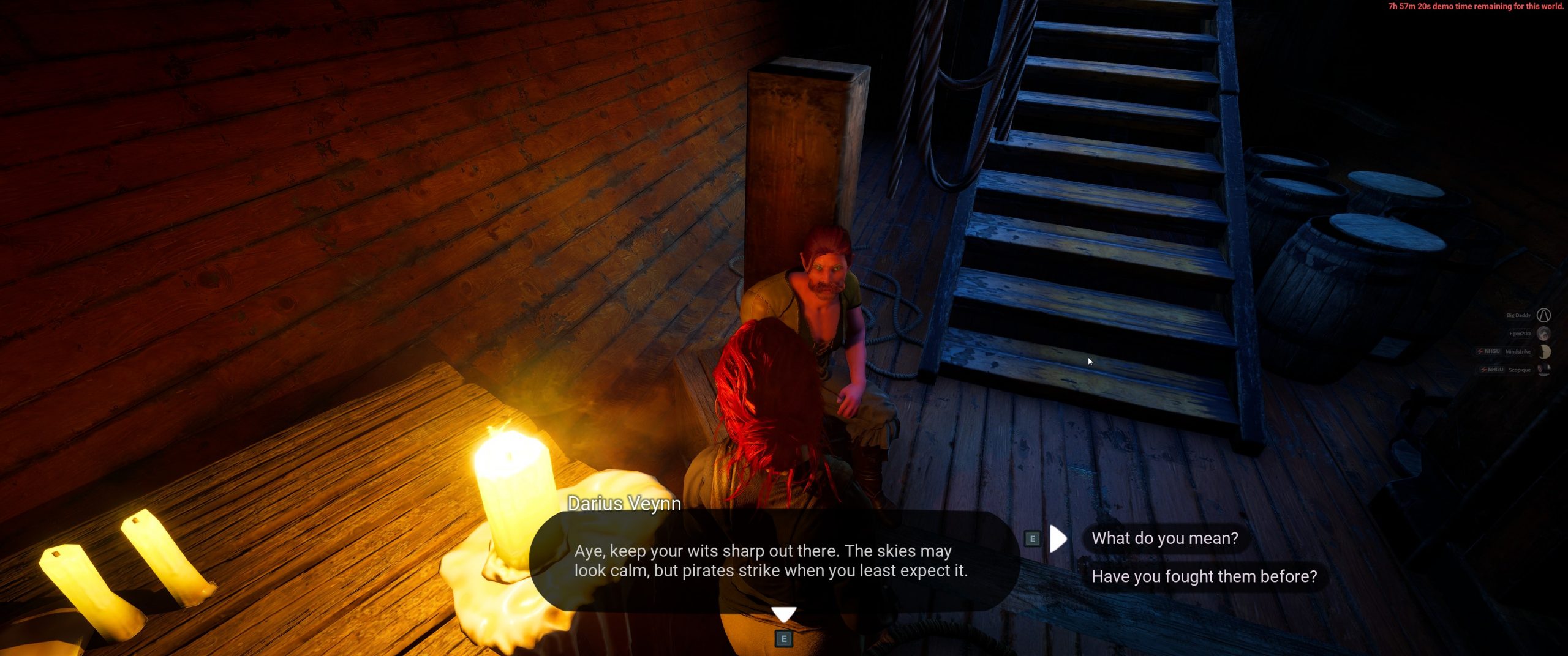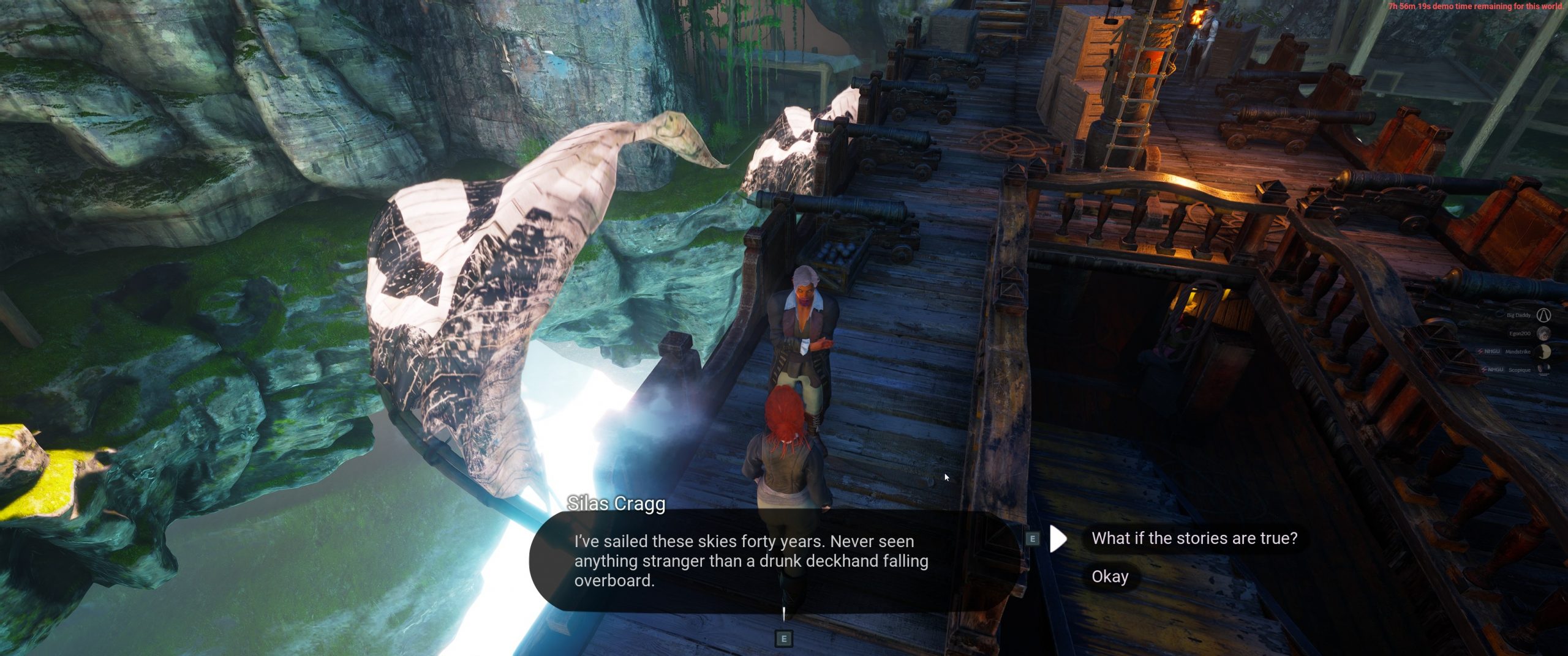 Anywho, I started out in the hold of a ship. Talking to all of the NPCs revealed that everyone was worried about the myths of terrible creatures out in the world that we might encounter. Some people considered them legends, some people believed them to be facts. Consider this to be foreshadowing. I do.