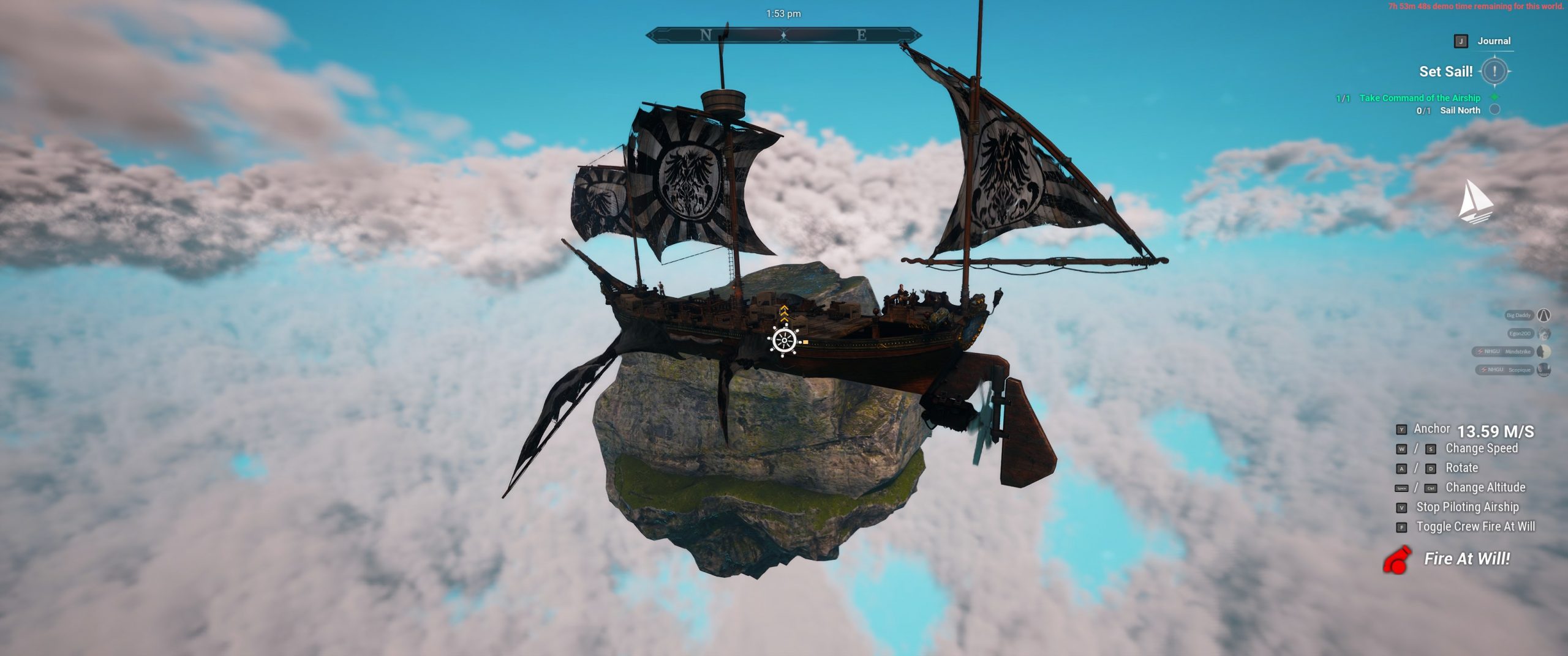 Low and behold…an air ship. Like ATMOSFAR, Lost Skies, Aloft, et al., I like the idea of a flying home base, but the most fundamental conceit behind such designs means that flying these things is going to be absolute dogshit of a time for me. I know, they’re not space ships or dogfighters and they move slowly and at the mercy of the wind, but I end up crashing these things far more often than I should be. Flying in these games is my least favorite aspect.
