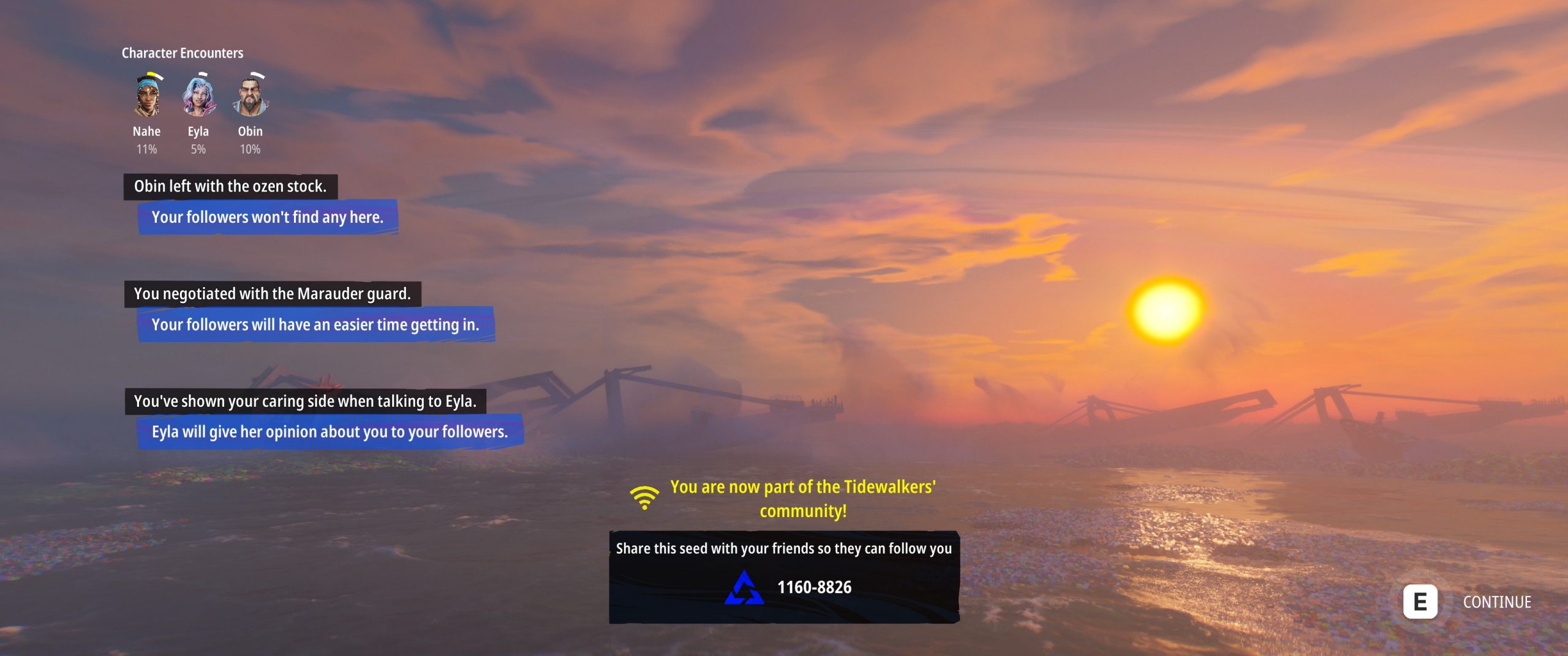 The developers, Digixart, made another game called Road 96 which I haven’t played (but will, thanks to ToT) which apparently sported procedurally generated gameplay. In Tides, there are procedurally generated situations, but the situations I get are determined by which other player I follow as in “come after” and not in the more traditional “influencer” sense.
