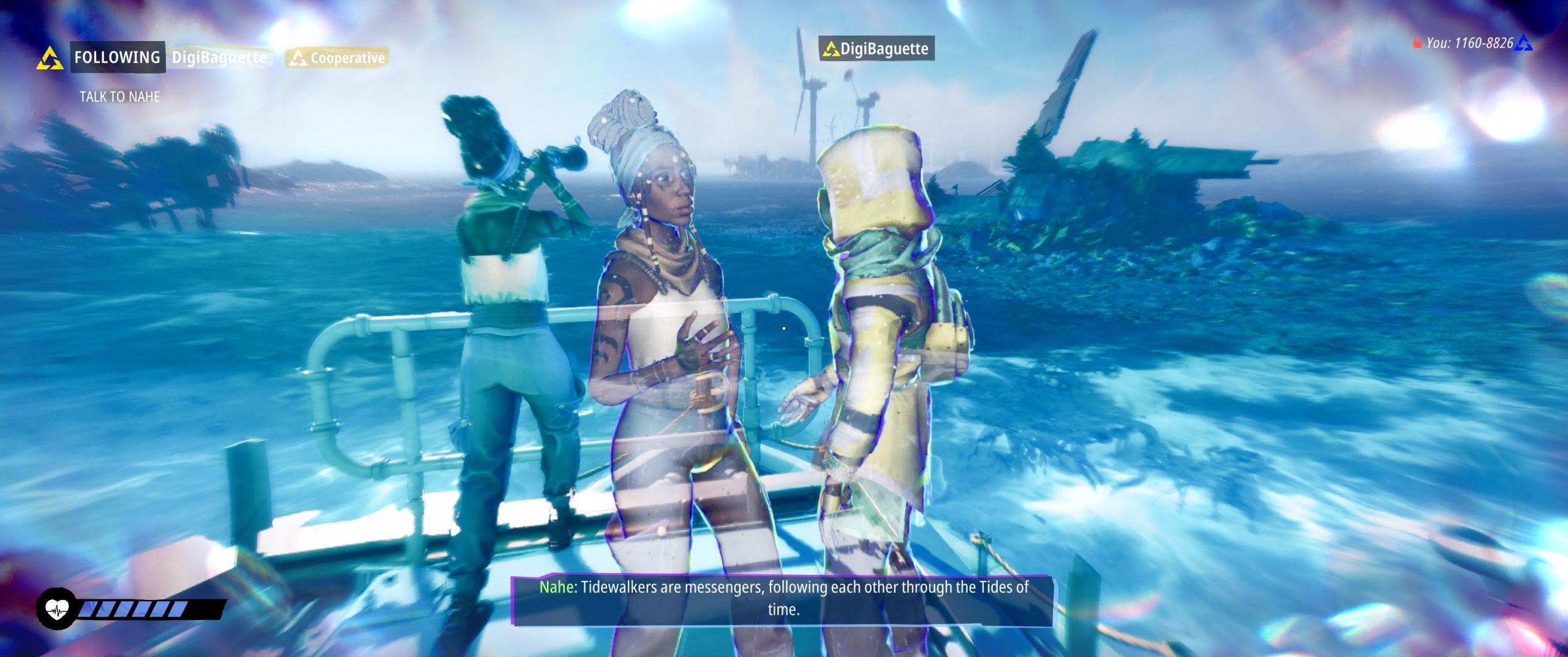 We are, however, Someone Special. The game begins when Nahe, a kind of “Morpheus” character who pops up now and again as a mysterious Greek chorus to clue us in on our destiny in the world, extracts us from beneath the waves where we’ve been languishing. She calls us a “tidewalker”, a designation which has little meaning early on, but seems to be something that NPCs in the game recognize on sight. Some are appreciative, some…decidedly are not.
