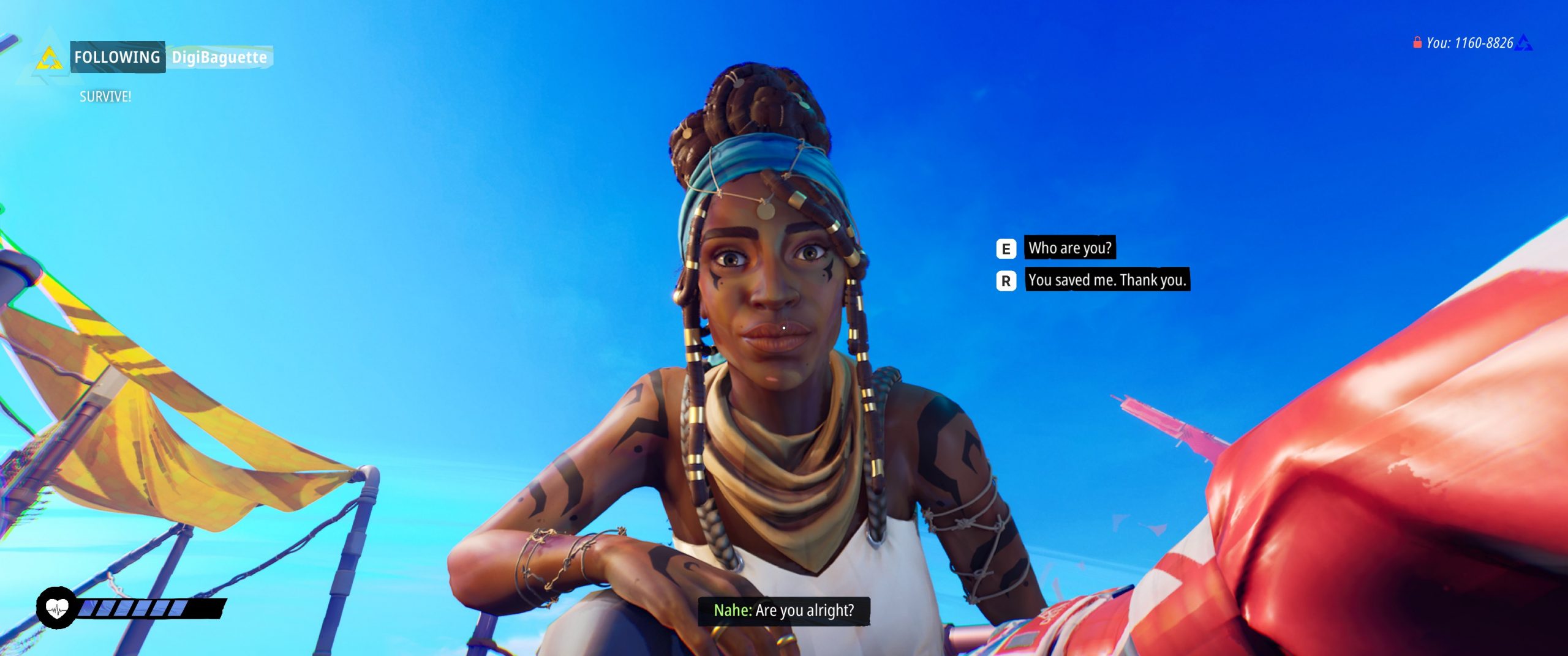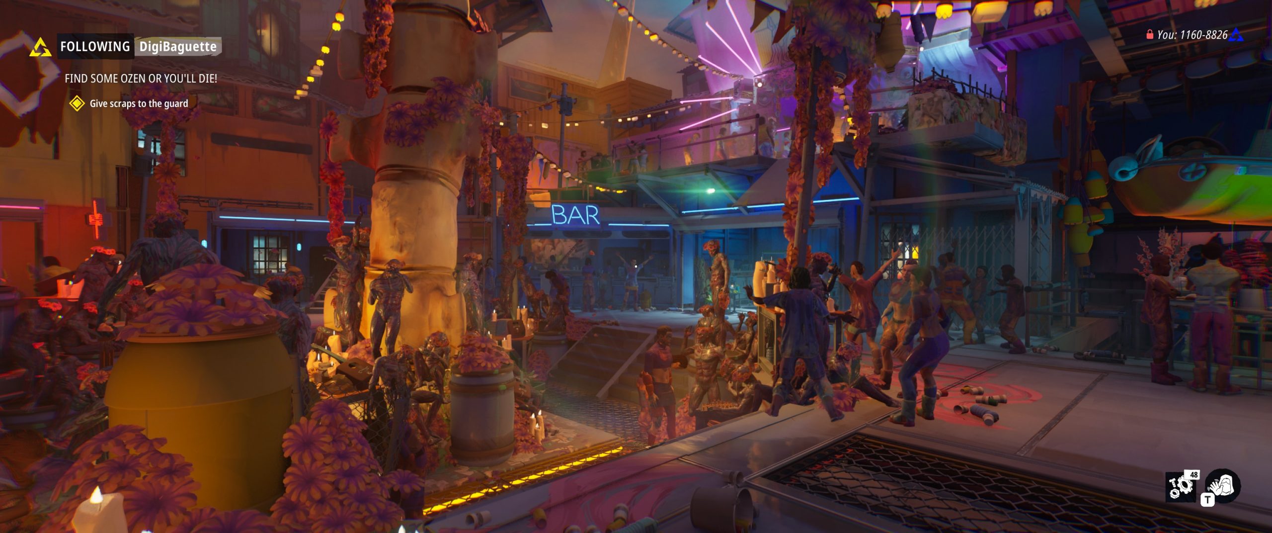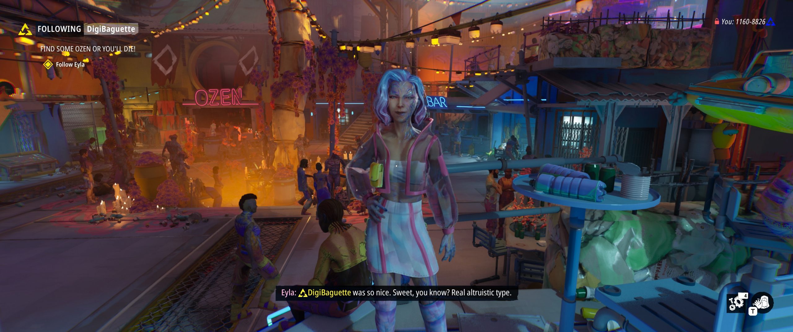Naturally, players can drain these caches dry if they want, but actions that a player takes affect several meters that are used to track the “type” of player they are. Are they Pro-Mankind? Cooperative? A Survivalist? These traits are displayed to new players when they are deciding who to follow, as they give a broad sense of the kind of world interactions they’ll experience when following a particular person. And if I don’t like who I follow, I can change when making a transition to a new zone. I chose to start by following a bot, and in doing so was getting the “best” possible options as bots are designed around a specific set of types from which I doubt they deviate much. The echoes of the bots are the best, most pure representations of those types; the one I chose, DigiBaguette, was helpful in pointing out things to look at and places to go, left items in the stash, and never took much from them, if anything at all, leaving me with a pretty comfortable intro. However they were the one who stole from the NPC and left them to die, destitute, so there’s that.