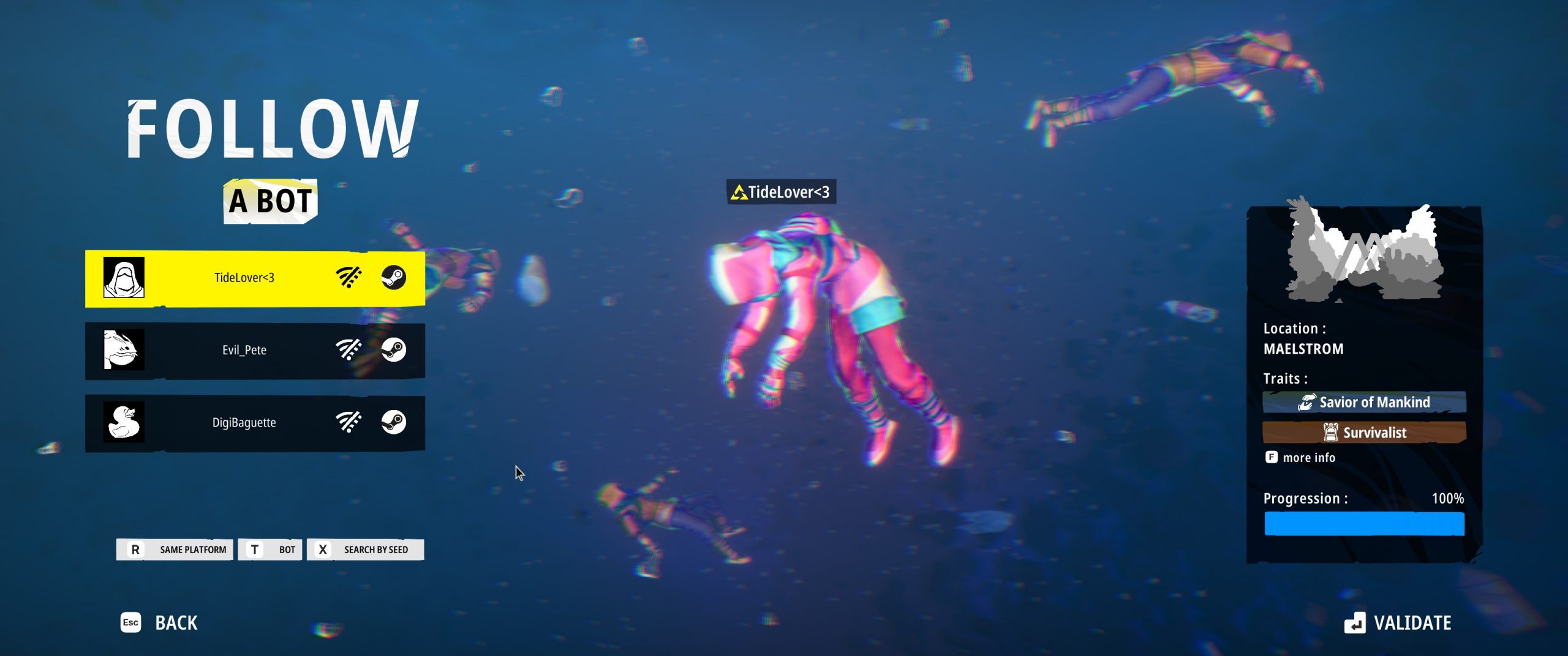 When starting a new game, I got to choose from a raft of other Tides players (pun intended). I could choose from everyone on my platform (Steam), from everyone cross-platform, from popular community choices, from friends, or from bots.